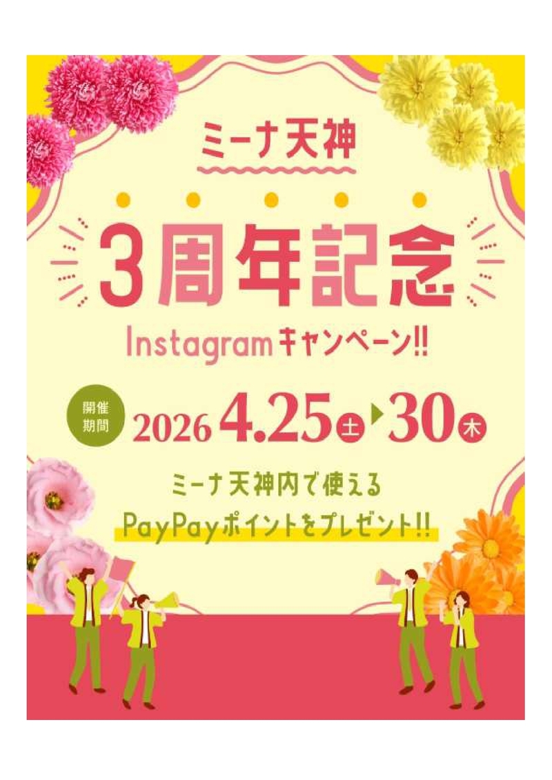 HOME > minaニュース > イベントニュース > 【ミーナ天神】オープン3周年記念!Instagramフォロー&コメントキャンペーン開催