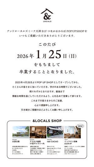 アンドローカルズ(つながるひろば POP UP SHOP)閉店のお知らせ