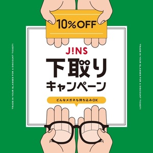 4/2(木)~4/22(水)の期間中、全国のJINS店舗に不要なメガネをお持ちいただくと新しくご購入のフレームが10%OFFに。